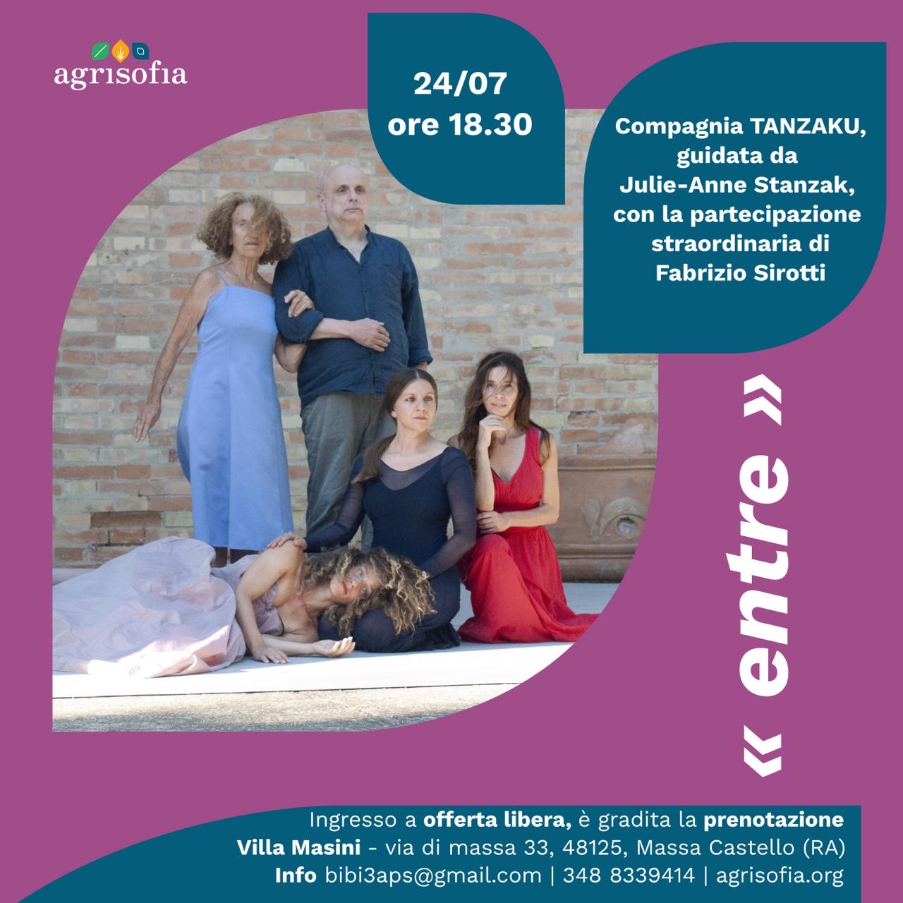 Grazie al sostegno di Agrisofia aps, la compagnia Tanzaku, guidata da Julie Anne Stanzak (danzatrice della compagnia di Pina Bausch), ha avuto la possibilità di lavorare in residenza negli spazi di Villa Masini; il 24 luglio alle 18.30 aprirà le porte al pubblico rendendolo partecipe del processo di creazione e del lavoro in costruzione « entre ».